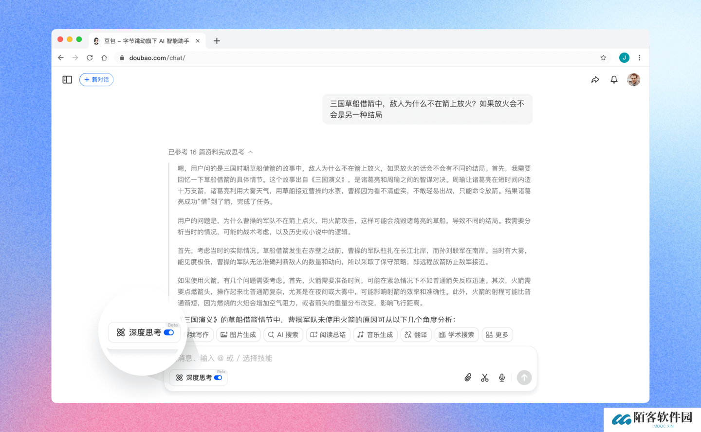 字节跳动豆包上线「深度思考」推理模式,覆盖问答、搜索、写作和阅读场景