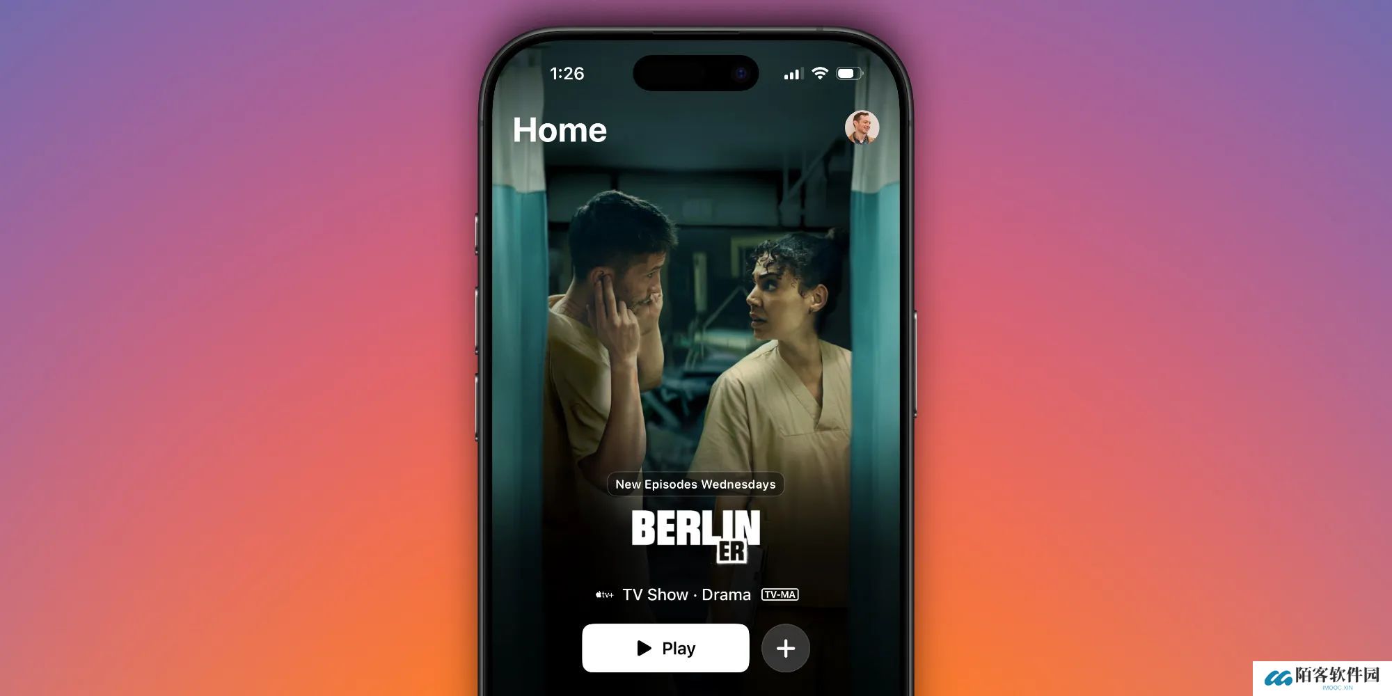 剧集更新信息更突出:对于正在更新的剧集,更新日程信息将更加醒目。以苹果的医疗剧《Berlin ER》为例,更新信息将以横幅形式显示在标题上方,例如“每周三更新新剧集”。