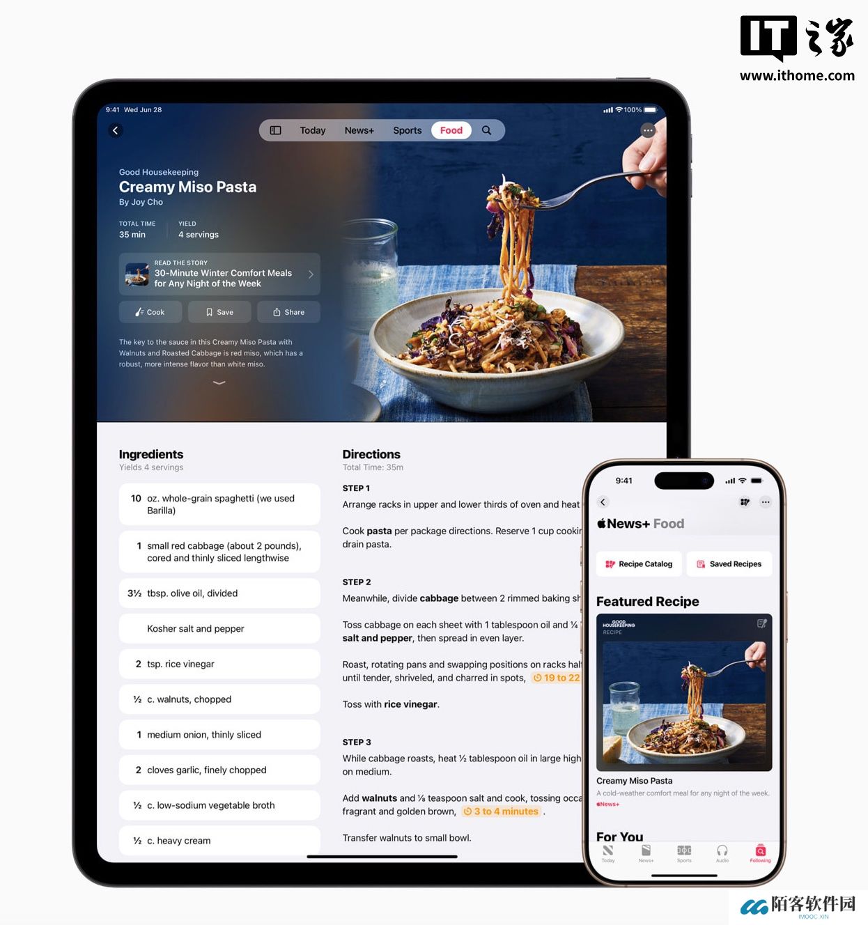 而苹果“新闻(Apple News)”应用的“Apple News+ Food”菜谱频道于 2 月 22 日官宣,目前已正式上线,仅对 Apple One高级订阅用户开放。苹果表示,该频道汇聚全球顶级美食出版商(包括Allrecipes、Bon Appétit、Food & Wine、Good Food以及Serious Eats)提供的数万道菜谱及关于餐厅、美食健康、厨房必备等内容。