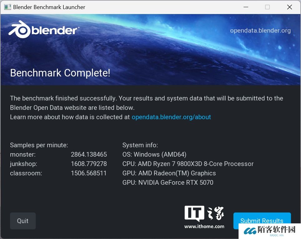 在 Blender 基准测试的 3 场景渲染中,NVIDIA GeForce RTX 5070 显卡的渲染性能相较 NVIDIA GeForce RTX 4070 显卡提升分别约为 12.1%、27.6%、13.6%。