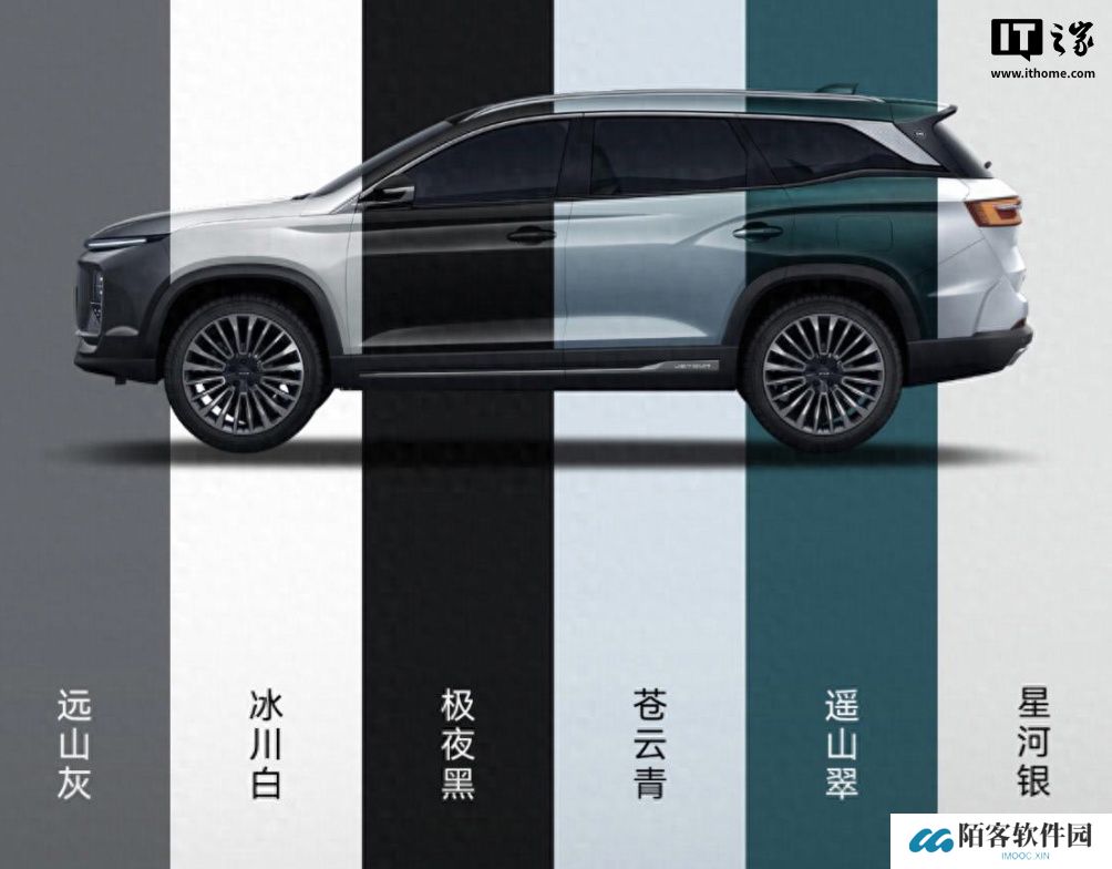 本站注意到,新车换装了封闭式格栅及采用分体式大灯组,其中上部分日行灯组为三段贯穿式风格,下方灯组两侧带有L型装饰。此外,该车提供冰川白、极夜黑、远山灰、遥山翠、星河银、苍云青六款外观配色可选。