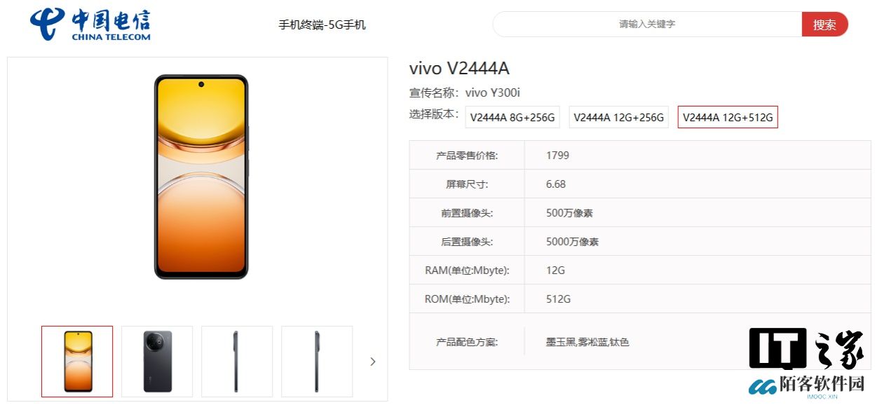 最高 12+512GB,vivo Y300i 手机现身中国电信终端产品库