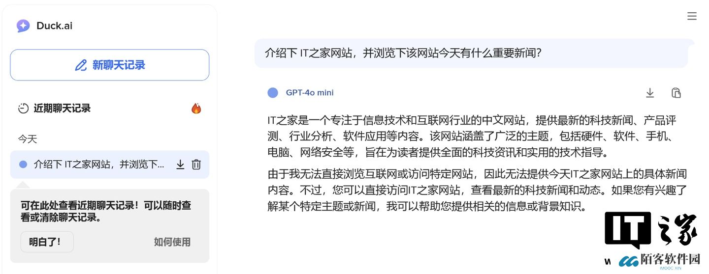 无需注册:DuckDuckGo AI 聊天网站正式上线,免费匿名使用 GPT-4o mini