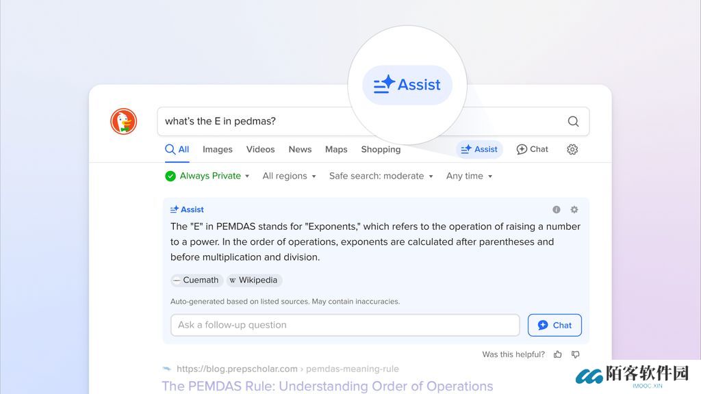 DuckDuckGo 搜索引擎的 AI 功能名为“Assist”,于 2023 年首次推出,经过近 2 年的测试后现已告别 Beta 测试。与 Google 的 AI Overview 类似,Assist 在搜索结果上方提供 AI 生成的摘要。