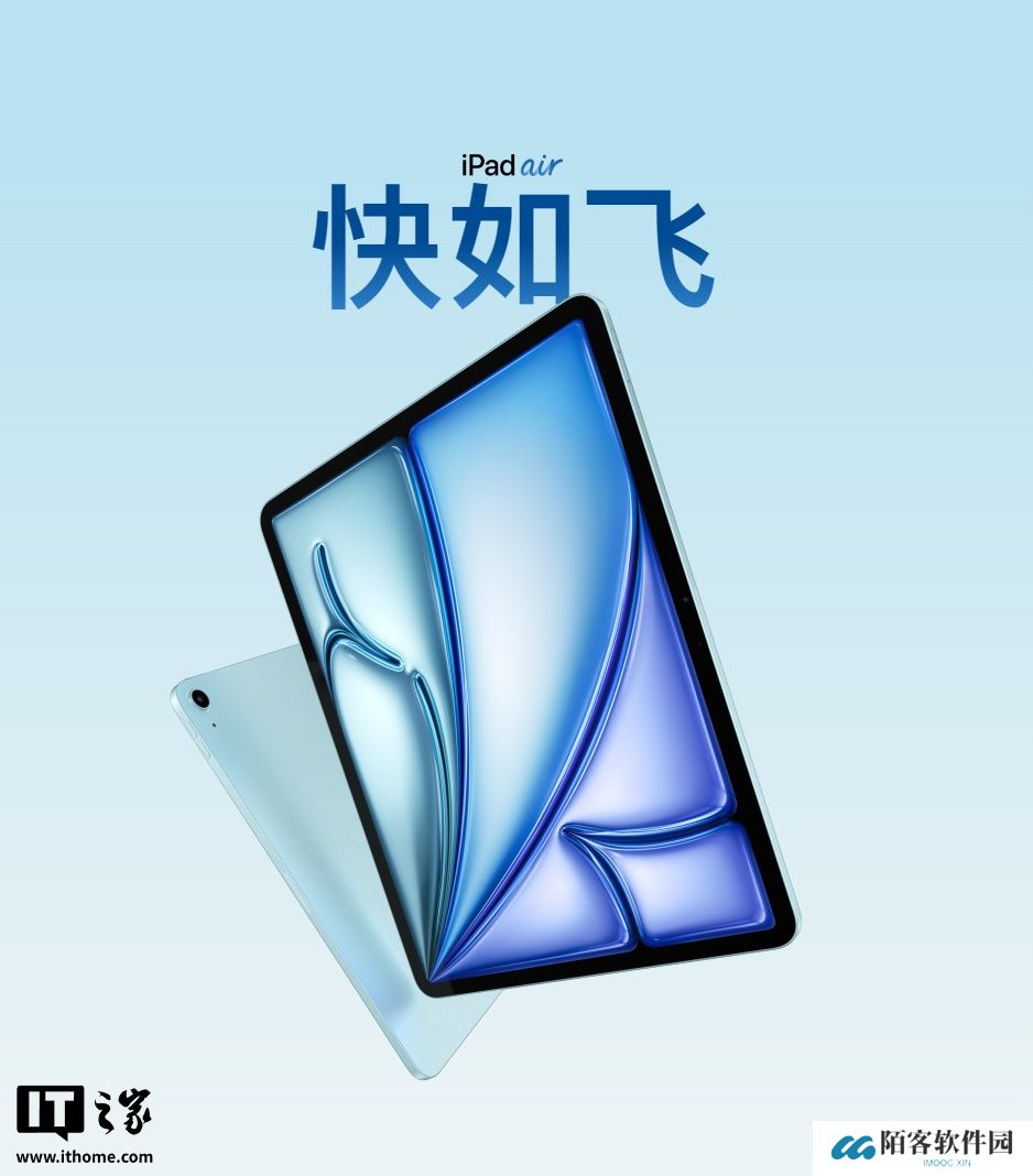 本站 3 月 4 日闪讯速报,苹果今日发布速度更快、性能更强的iPad Air,搭载 M3 芯片。中国大陆用户于 3 月 6 日起即可预购,新机型将于 3 月 12 日起正式发售,起售价 4,799 元。