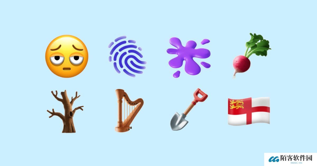 苹果在本次更新中新增了 8个Emoji表情,这些符号由 Unicode 联盟于 2024 年 5 月提出,现已正式登陆 Messages 应用: