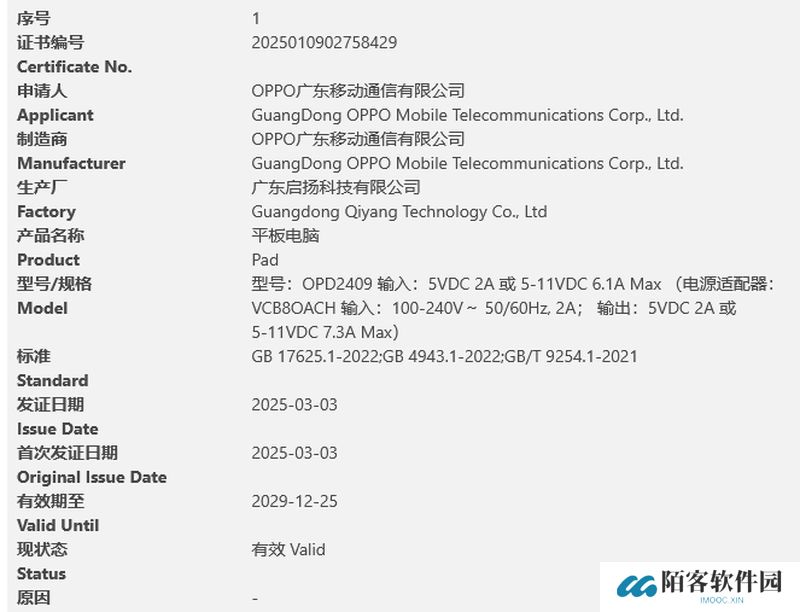 本站注意到,型号为“OPD2409”的 OPPO 设备于 3 月 3 日通过 3C 认证,预计为 OPPO Pad 4 Pro 平板,支持最高 80W 快充。相比前代 Pad 3 和 Pad 3 Pro 的 67W 快充,充电速度进一步提升。