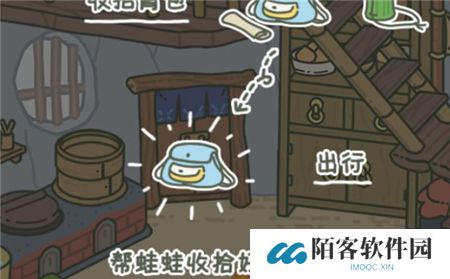 4、另外在后面青蛙可能会因为找到了腊梅而不出门,那么我们可以为青蛙准备好旅行用的物品和食物然后放在小屋的桌子上面,等待青蛙自己想要出门就可以了。