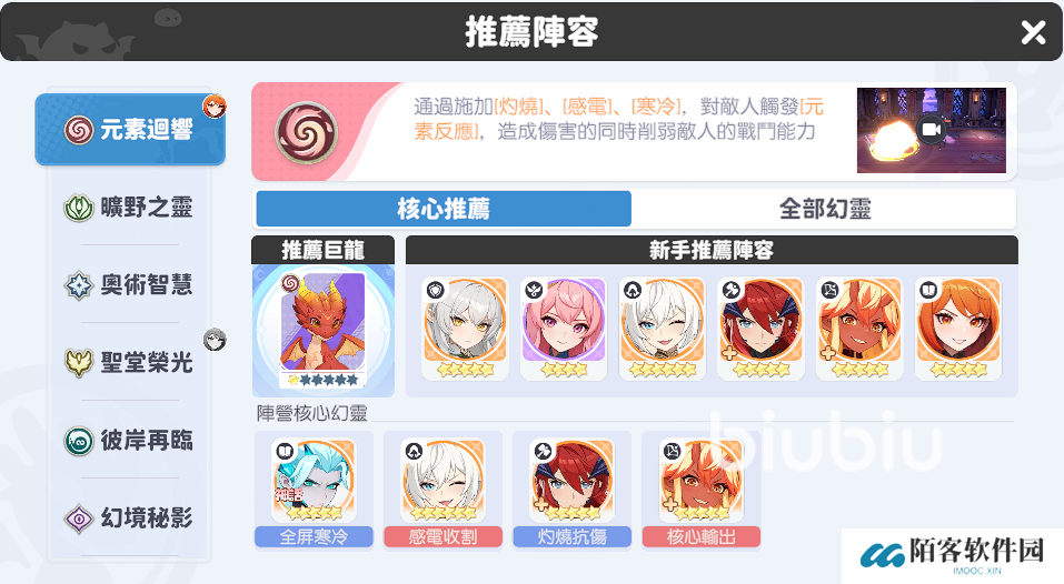 幻灵的阵营有,元素回响,旷野之灵,奥术智慧,圣堂如果你光,彼岸再临,幻境秘影这些,当角色进入站门幻化巨龙时,就会触发天赋技能,可以给指定阵营的幻灵附加“龙威”状态,从而增加属性,四星以上品质的幻灵提升到6星,还能解锁幻灵的第二阵营。