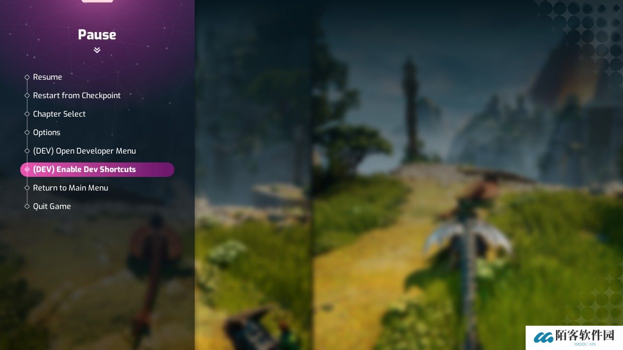 进入任意关卡,按ESC暂停游戏,选择(DEV) Open Developer Menu。