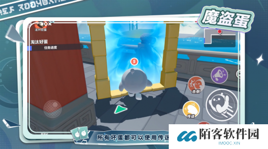 拍卖会的镁光灯突然熄灭,展台上的蓝宝石项链在众目睽睽之下消失无踪。不用怀疑,这必然是魔盗蛋的手笔!在对局中,魔盗蛋使用技能即可在原地留下一个标记,再次使用技能将打开仅坏蛋可见的传送门;同时,地图中会标注传送门的位置,所有坏蛋都可以使用传送门进行位置传送。