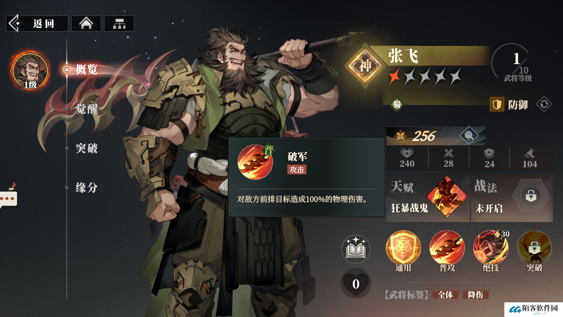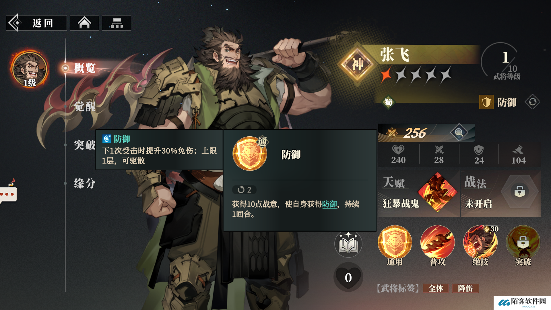 三国志幻想大陆2枭之歌张飞的技能情况是不是都搞清楚了,张飞作为一个防御型的武将,不仅拥有相当可观的降低伤害的能力,还能对全体敌人攻击,攻击力也还可以,以防御为主,还能辅助输出,也是十分不错的武将人选。