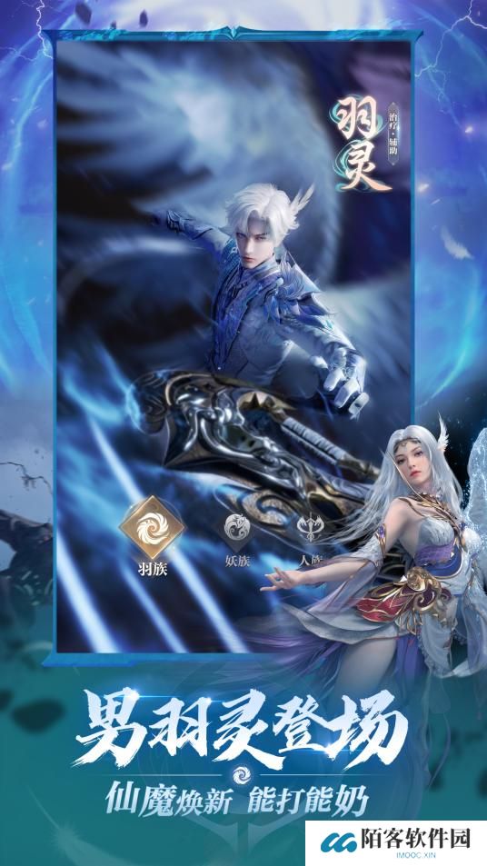 二十年来,完美大陆富有特色的种族当属天生洁白翅膀、耳间有神赐之羽的“羽族”。在3月20日新版本中,神力强大,英朗圣洁的男性羽灵即将登场!仙魔转职焕新加强,掌控雷电能打能奶,是当之无愧的版本之子!