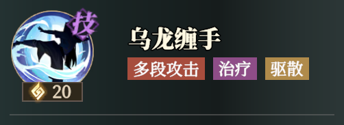 在之后强化自身给到一层免伤buff的效果,这是一个带有自强化的普攻技能在游戏中是比较少见的,这第三个技能也是最后一个主动,该技能拥有对敌方任意单位造成3段攻击,每段攻击造成38%的物理伤害并且驱散增益恢复自身生命值的效果。