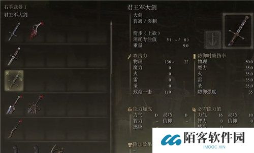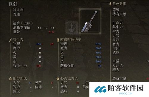 这把剑基础攻击力很高,但是需要31点力量才能拿得动,且后摇比较大,双持的话只需要21点力量就行了。
